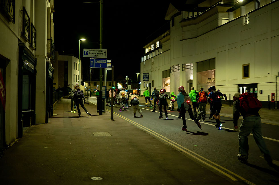 Kicking off at 19.00 at the Pittville Pump Room, the marshals gathered for the first briefing of the year. Over 60 skaters were gathered, ready to head out on the route around Cheltenham laid out for us by Don Simon (Si Coburn), our local man about town. Lights on, skates tightened, speakers turned up to 11, and we set out into the darkness to show the city what The Grand Skate Tour is all about!